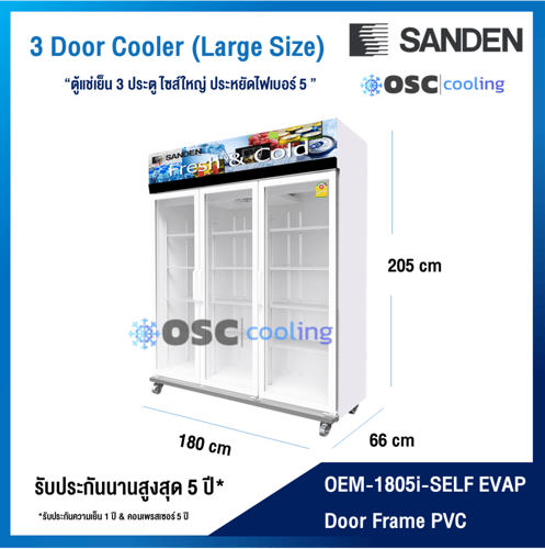 ตู้แช่เย็น 3 ประตู ระบบ Inverter "SANDEN" 54 คิว [OEM-1805i-SELF EVAP-DOOR FRAME PVC]