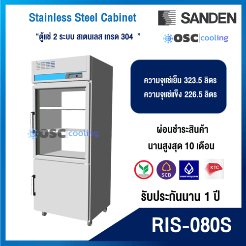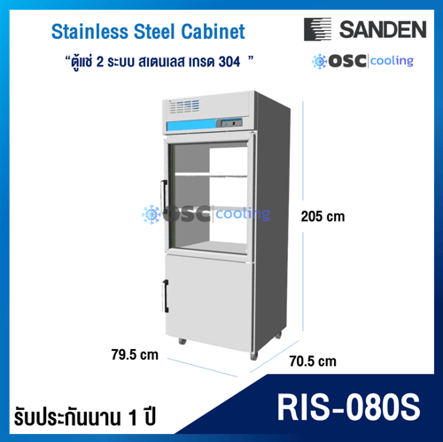 ตู้แช่ 2 ระบบ ประตูกระจก "SANDEN" สเตนเลสเกรด 304 [RIS-080S]