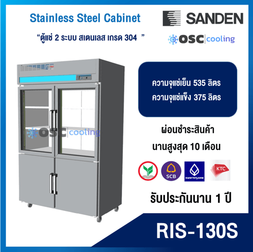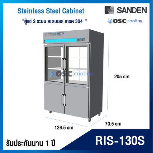 ตู้แช่ 2 ระบบ ประตูบนบานกระจก "SANDEN" สเตนเลสเกรด 304 [RDS-0685i]