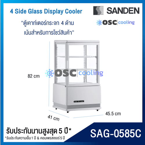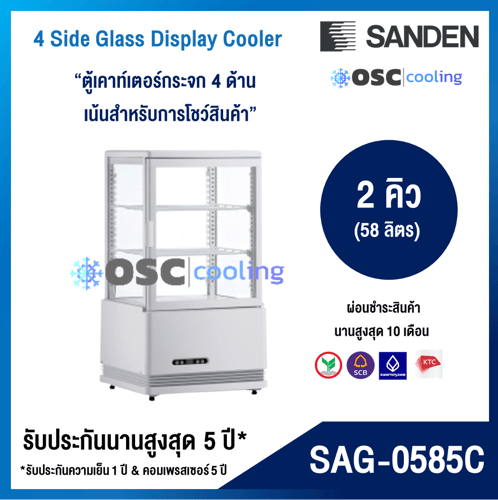 ตู้แช่กระจก 4 ด้าน ชั้นวาง 2 ชั้น "SANDEN" 2.1 คิว [SAG-0585C]