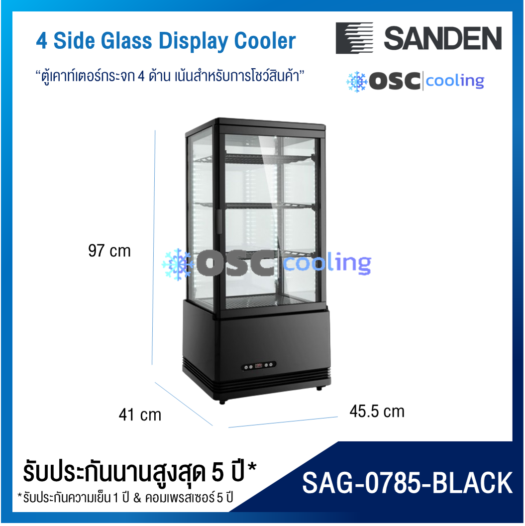 ตู้แช่กระจก 4 ด้าน ชั้นวาง 3 ชั้น "SANDEN" 2.8 คิว สีดำ [SAG-0782C-BLACK]