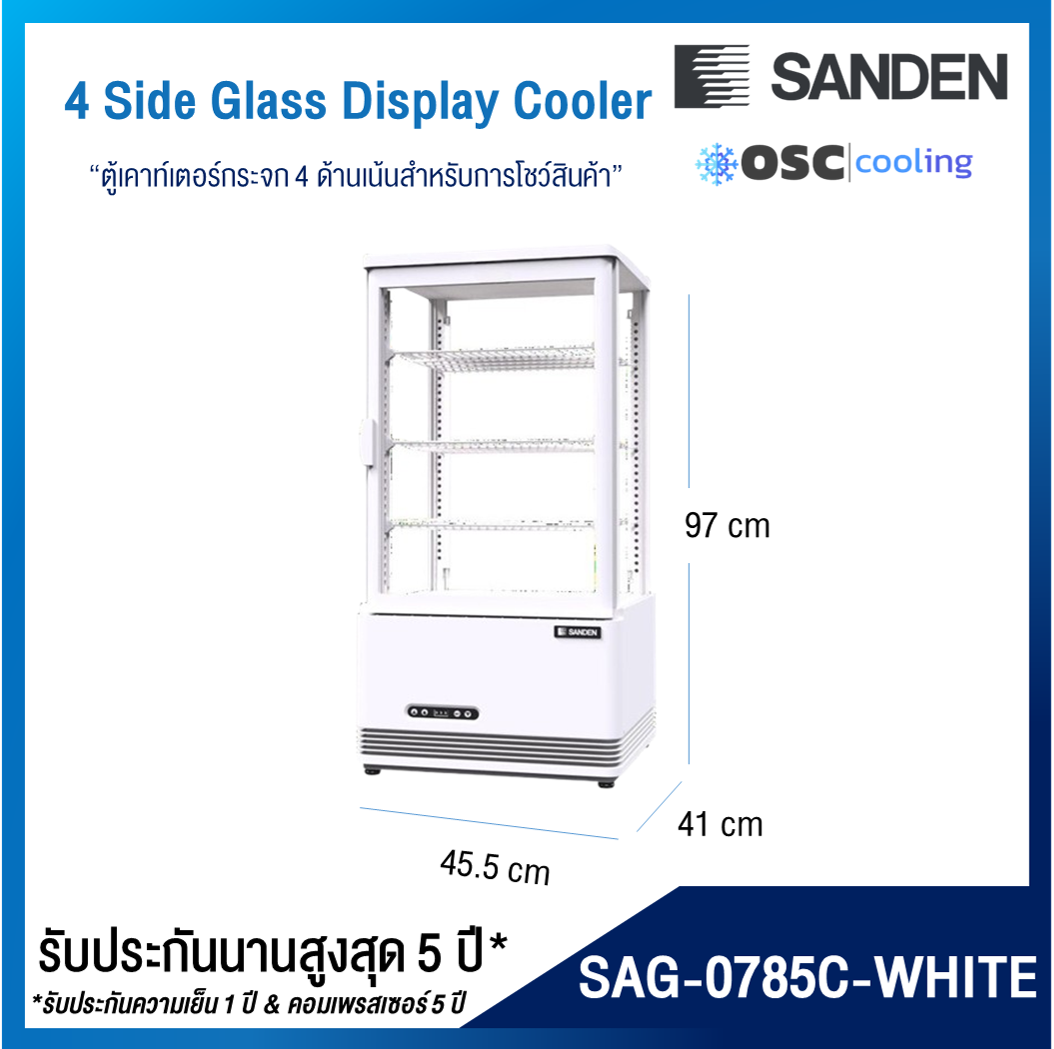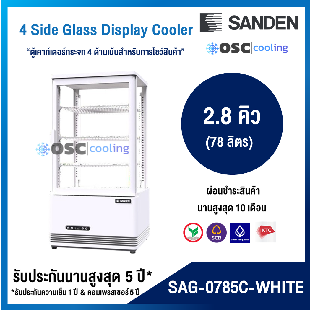 ตู้แช่กระจก 4 ด้าน ชั้นวาง 3 ชั้น "SANDEN" 2.8 คิว [SAG-0785C-WHITE]