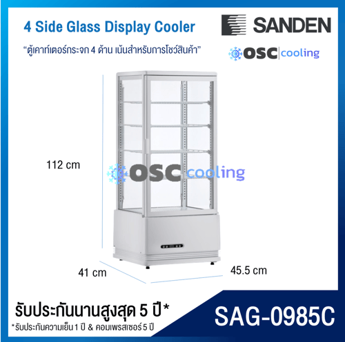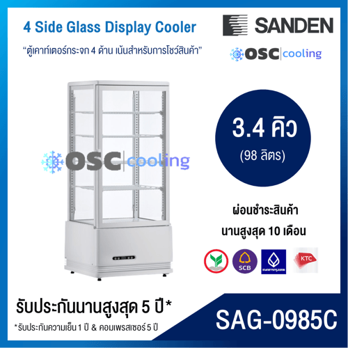ตู้แช่กระจก 4 ด้าน ชั้นวาง 4 ชั้น "SANDEN" 3.5 คิว [SAG-0985C]