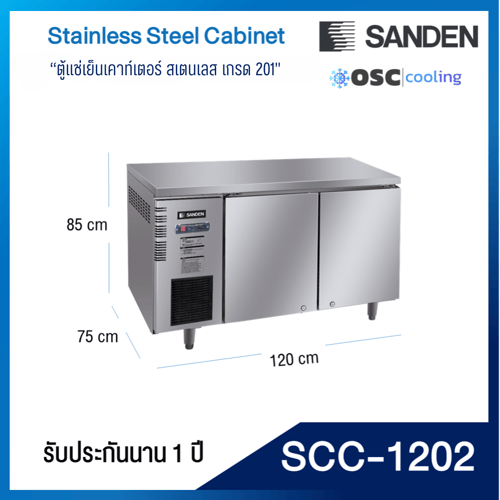 ตู้แช่เย็นเคาท์เตอร์สเตนเลส ความลึก 60 ซม. เกรด304 "SANDEN" 6.2 คิว INVERTER [SCR3-1206-Ai]