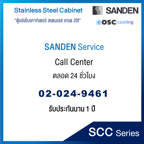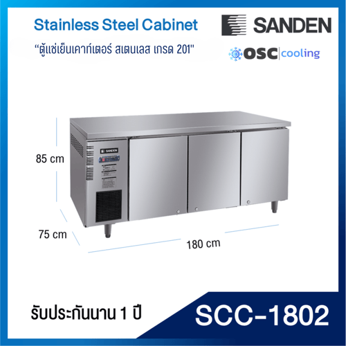 ตู้แช่เย็นเคาท์เตอร์สเตนเลส ความลึก 75 ซม. เกรด304 "SANDEN" 17.1 คิว INVERTER [SCR3-2007-Ai]