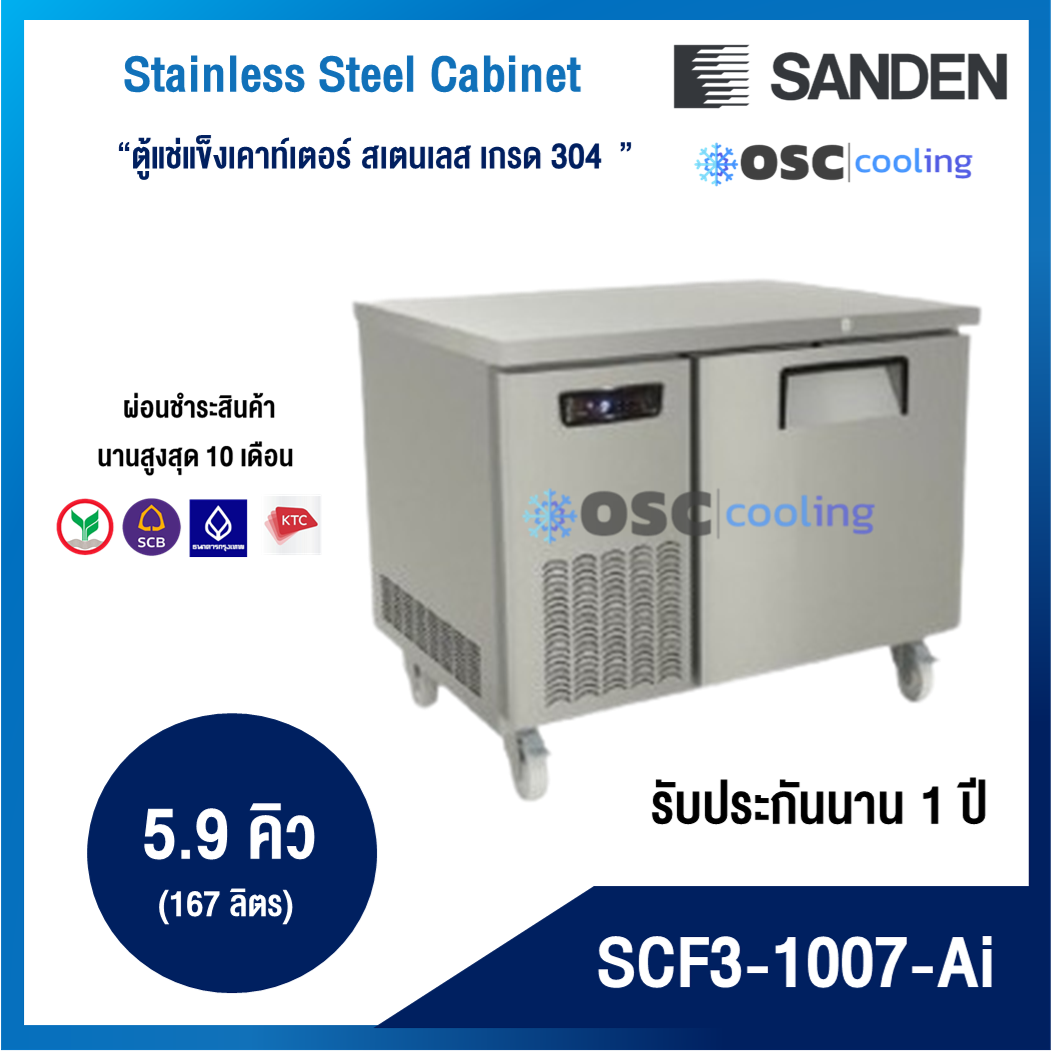 ตู้แช่แข็งเคาท์เตอร์สเตนเลส ความลึก 75 ซม. เกรด304 "SANDEN" 11.5 คิว INVERTER [SCF3-1507-Ai]