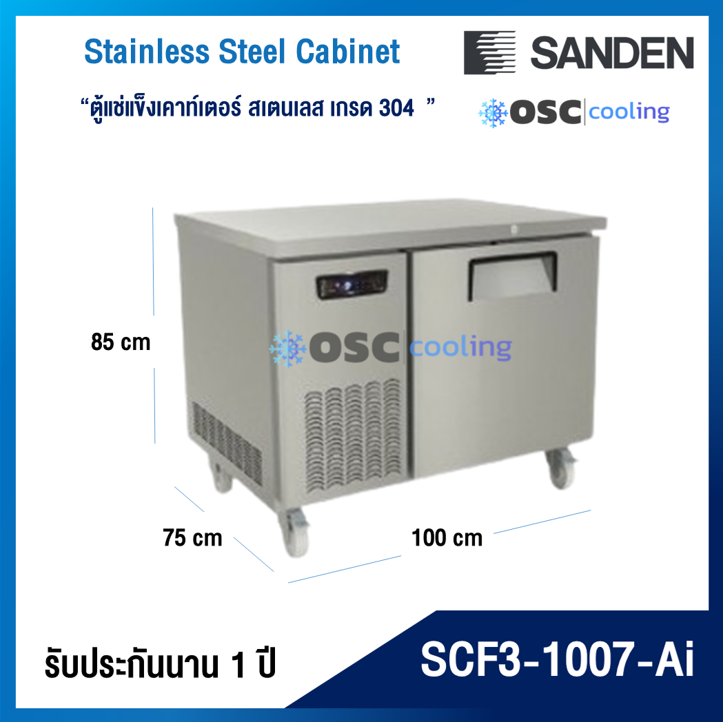 ตู้แช่แข็งเคาท์เตอร์สเตนเลส ความลึก 75 ซม. เกรด304 "SANDEN" 17.1 คิว INVERTER [SCF3-2007-Ai]