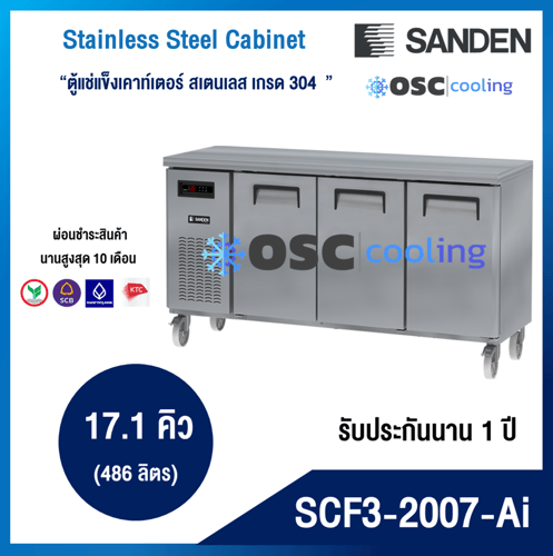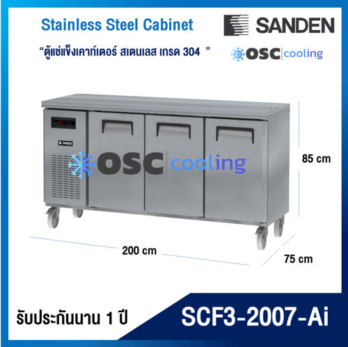 ตู้แช่แข็งเคาท์เตอร์สเตนเลส ความลึก 75 ซม. เกรด304 "SANDEN" 5.9 คิว INVERTER [SCF3-1007-Ai]