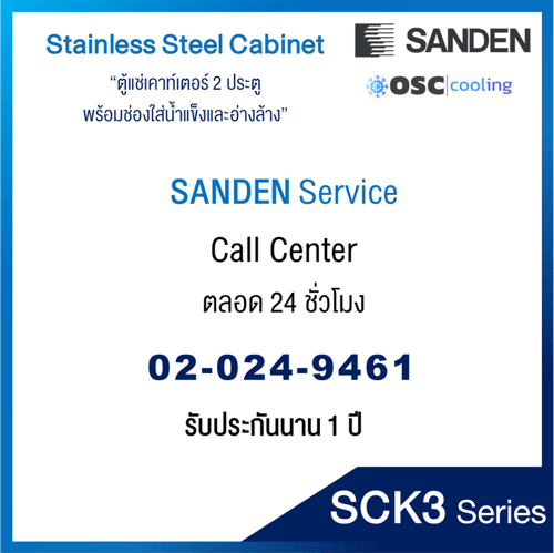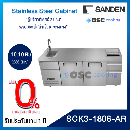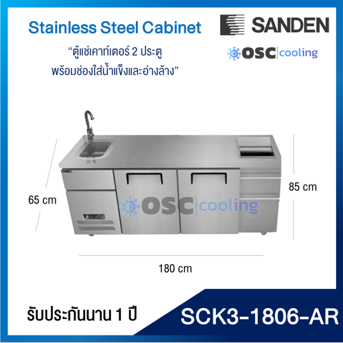 ตู้แช่เคาท์เตอร์ 2 ประตู พร้อมช่องใส่น้ำแข็งและอ่างล้าง 7 คิว [SCK3-1506-AR]