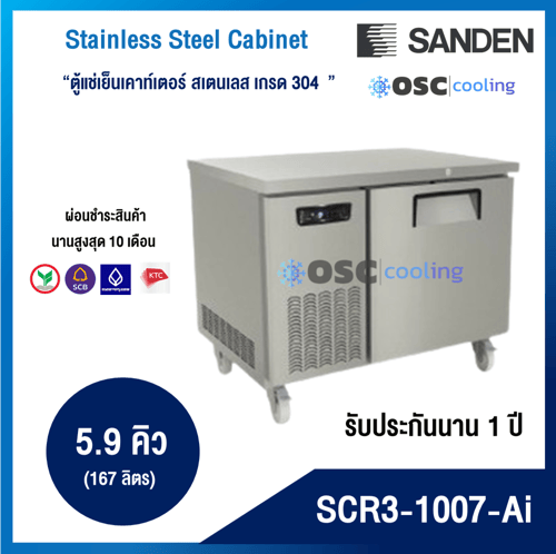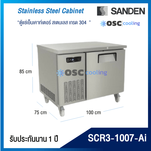 ตู้แช่เย็นเคาท์เตอร์สเตนเลส ความลึก 75 ซม. เกรด304 "SANDEN" 5.9 คิว INVERTER [SCR3-1007-Ai]