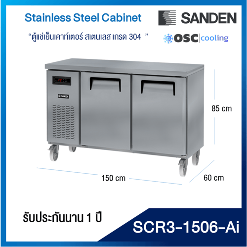 ตู้แช่เย็นเคาท์เตอร์สเตนเลส ความลึก 60 ซม. เกรด304 "SANDEN" 6.2 คิว INVERTER [SCR3-1206-Ai]
