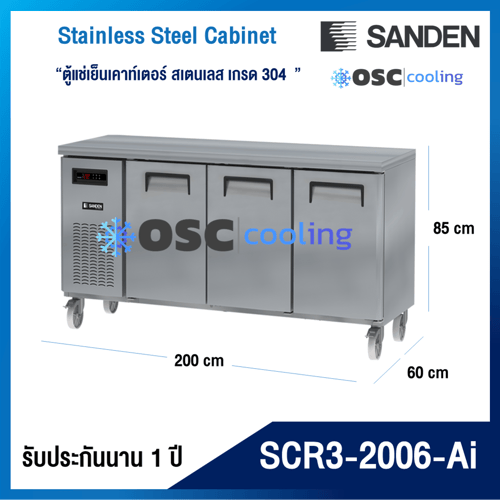ตู้แช่เย็นเคาท์เตอร์สเตนเลส บานประตูกระจก ความลึก 75 ซม. เกรด201 10.6 คิว [SCC-1202G]