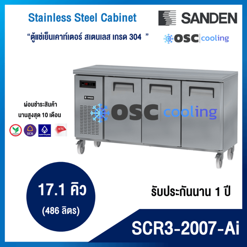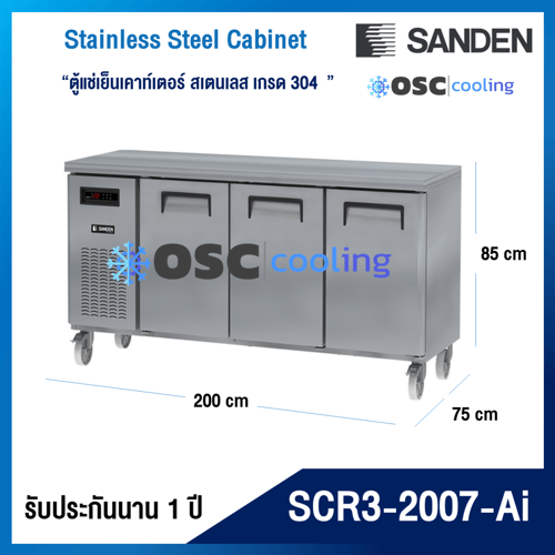 ตู้แช่เย็นเคาท์เตอร์สเตนเลส ความลึก 75 ซม. เกรด304 "SANDEN" 5.9 คิว INVERTER [SCR3-1007-Ai]