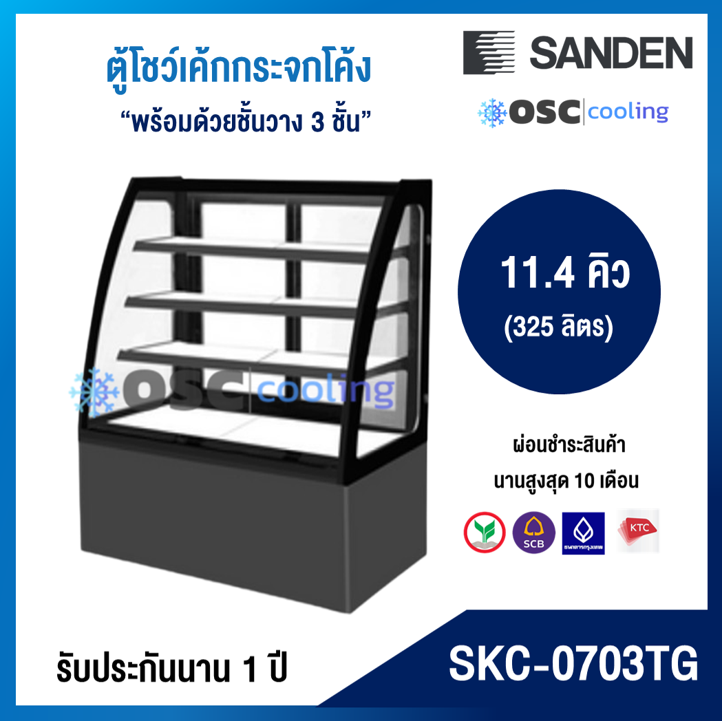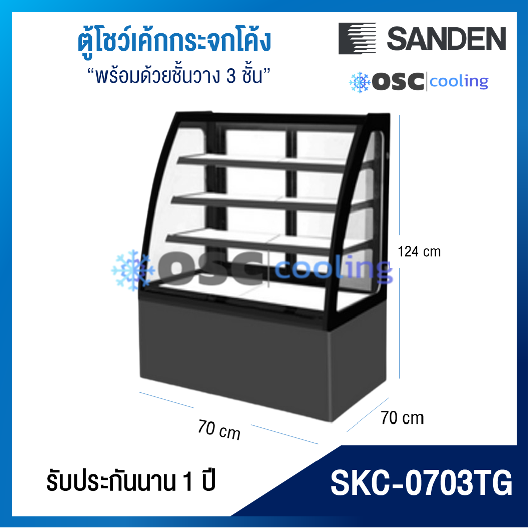 ตู้โชว์เค้กกระจกโค้ง 3 ชั้นวาง กว้าง 70 ซม. สีสเตนเลส "SANDEN" 10.6 คิว [SKK-0707Z]