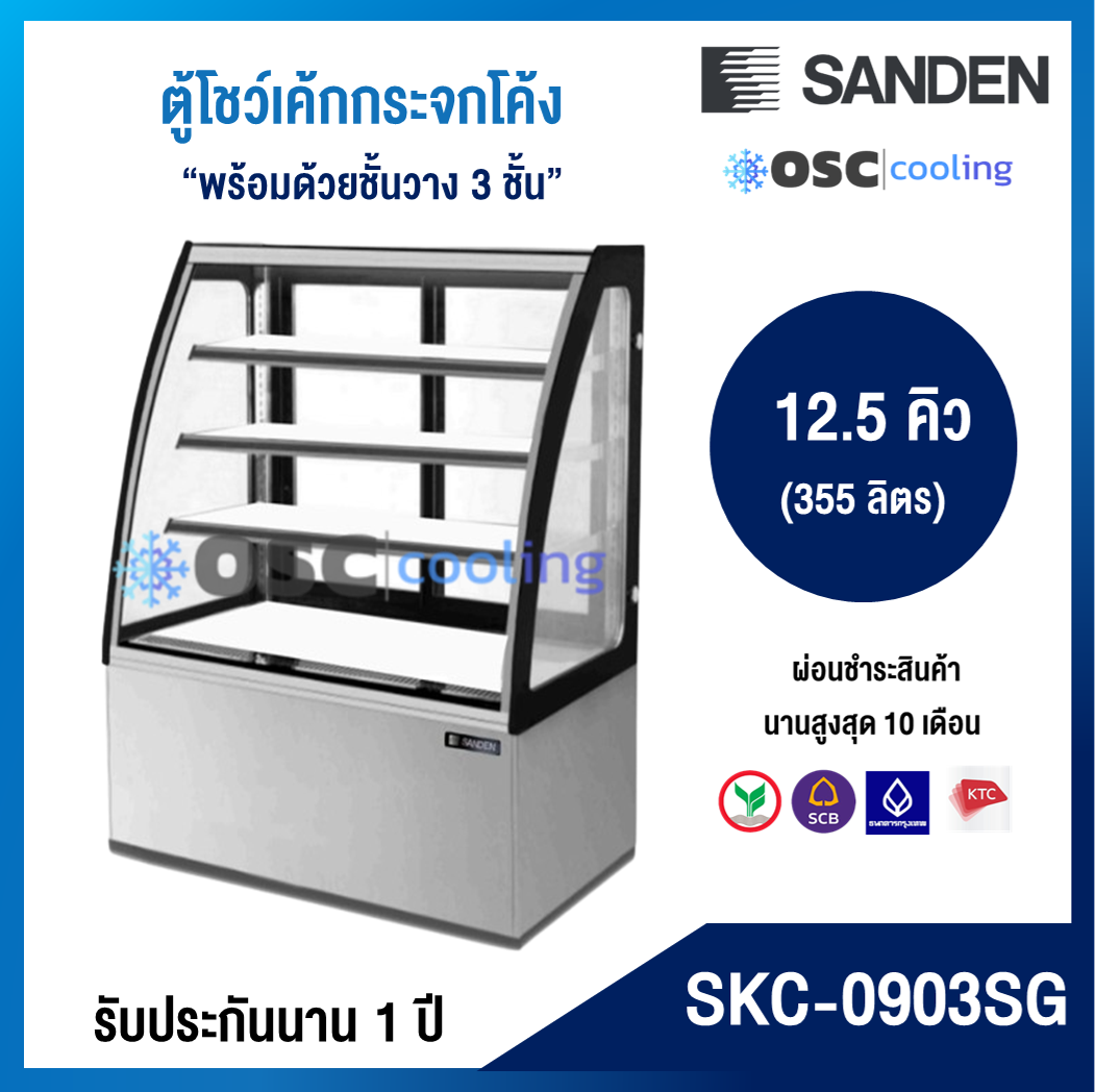 ตู้โชว์เค้กกระจกโค้ง 3 ชั้นวาง กว้าง 90 ซม. สีสแตนเลส "SANDEN" 12.5 คิว [SKC-0903SG]