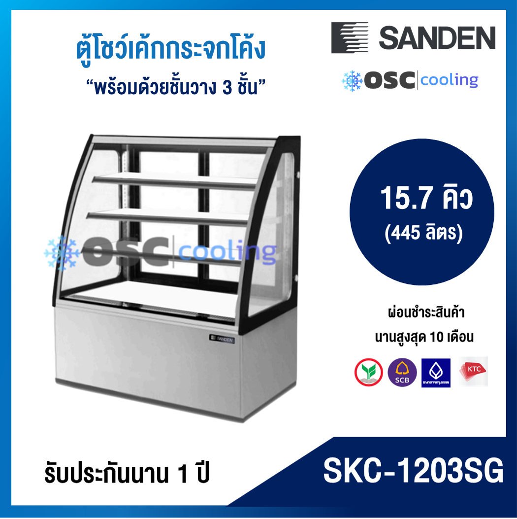 ตู้โชว์เค้กกระจกโค้ง 3 ชั้นวาง กว้าง 150 ซม. สีสแตนเลส "SANDEN" 19.4 คิว [SKC-1503G]