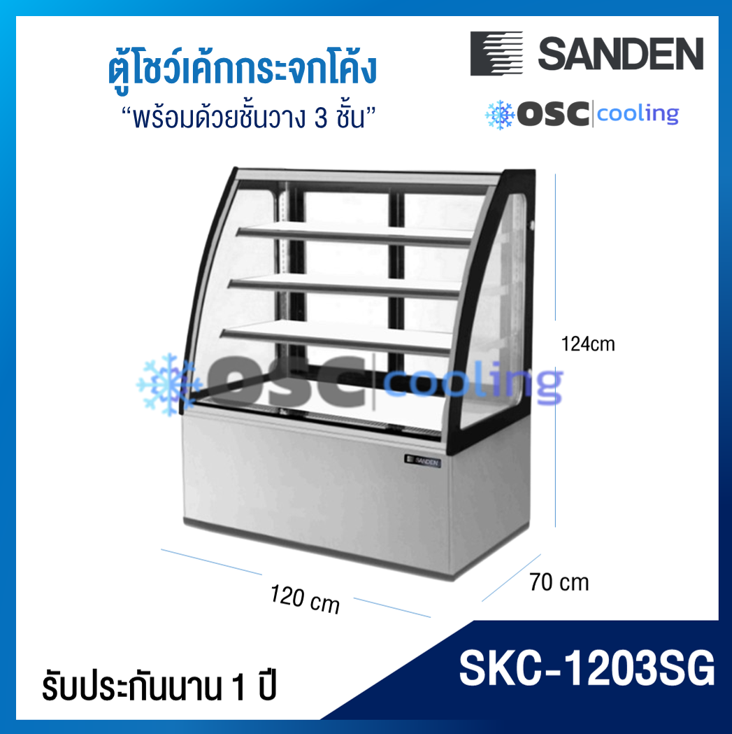 ตู้โชว์เค้กกระจกโค้ง 3 ชั้นวาง กว้าง 70 ซม. สีสแตนเลส "SANDEN" 11.4 คิว [SKC-0703G]