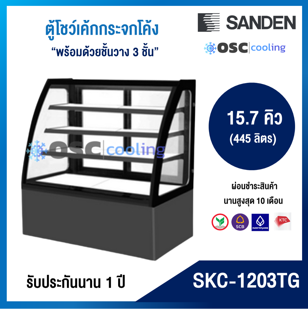 ตู้โชว์เค้กกระจกโค้ง 3 ชั้นวาง กว้าง 120 ซม. สีสเตนเลส "SANDEN" 15.7 คิว [SKC-1203G]