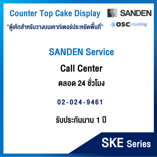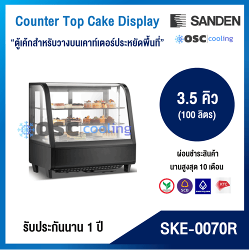 ตู้โชว์เค้กกระจกตรง สำหรับวางบนเคาท์เตอร์ "SANDEN" 3.8 คิว [SKR-0070R]