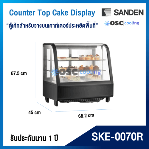 ตู้โชว์เค้กกระจกโค้ง สำหรับวางบนเคาท์เตอร์ "SANDEN" 3 คิว [SKC-0070G]