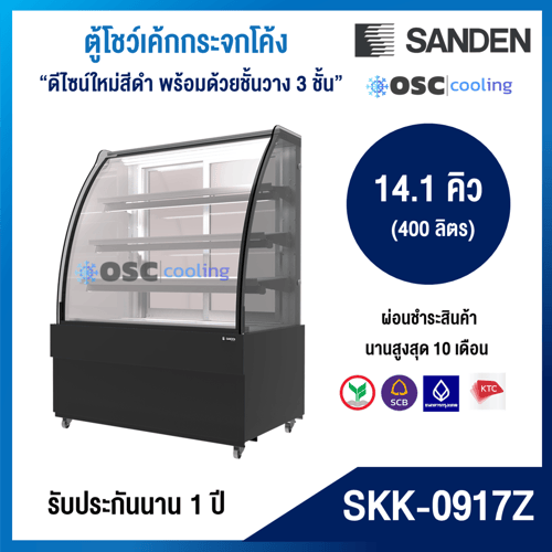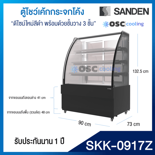 ตู้โชว์เค้กกระจกโค้ง 3 ชั้นวาง Premium Plus กว้าง 90 ซม. สีดำ 14.1 คิว [SKK-0917Z]