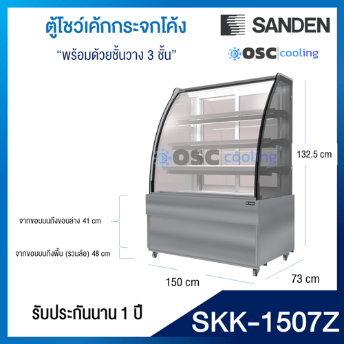 ตู้โชว์เค้กกระจกโค้ง 3 ชั้นวาง กว้าง 150 ซม. สีสแตนเลส 22.4 คิว [SKK-1507Z]