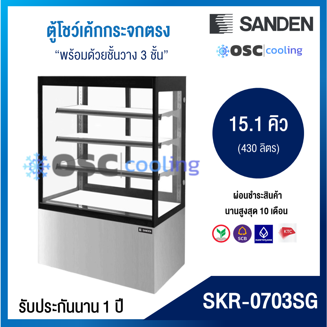 ตู้โชว์เค้กกระจกตรง 3 ชั้นวาง กว้าง 70 ซม. สีสแตนเลส "SANDEN" 15.1 คิว [SKR-0703G]