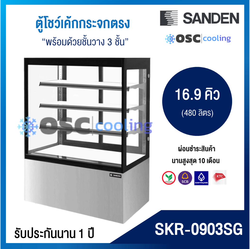 ตู้โชว์เค้กกระจกตรง 3 ชั้นวาง กว้าง 120 ซม. สีสเตนเลส "SANDEN" 21.1 คิว [SKS-1207Z]