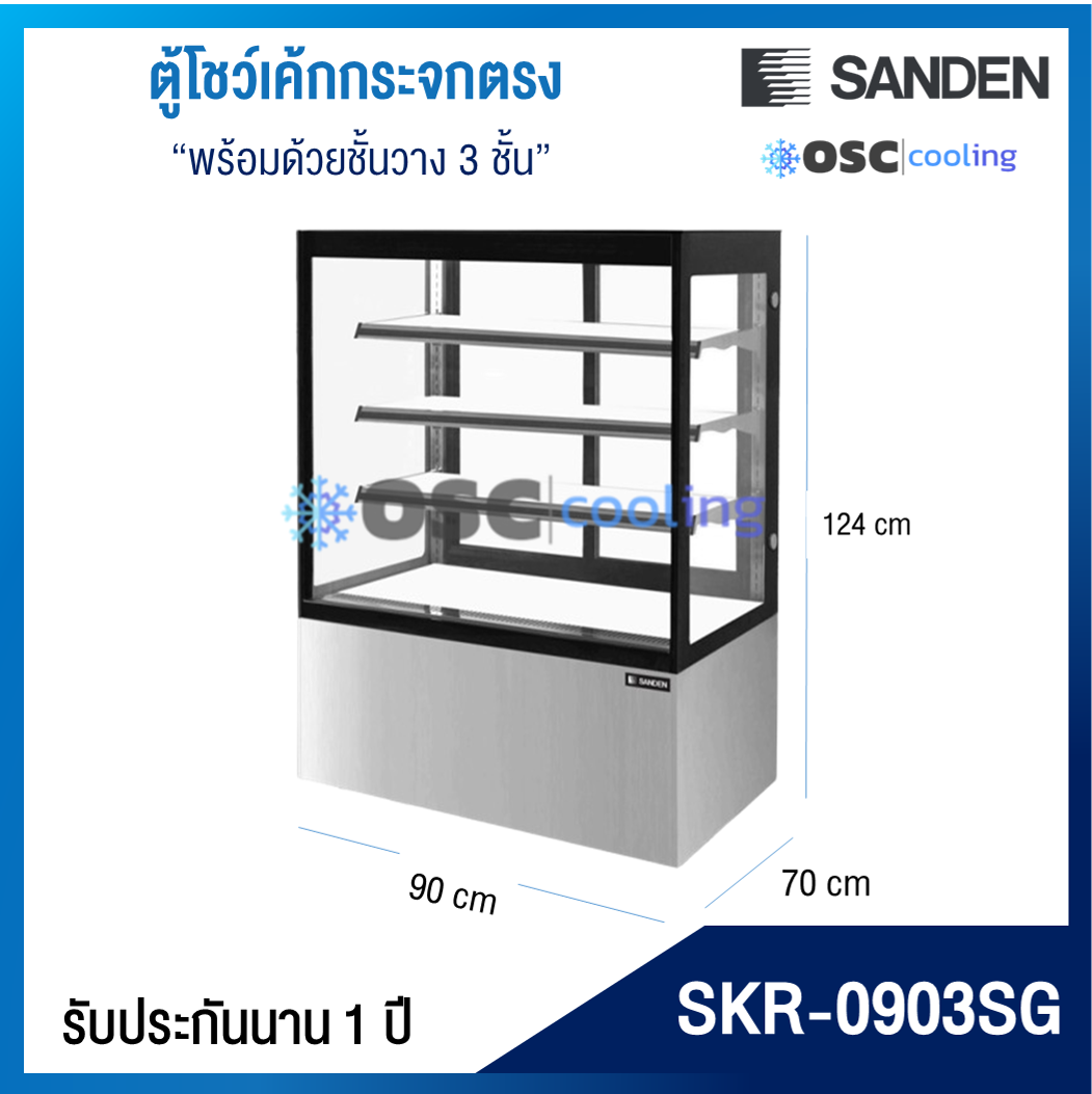 ตู้โชว์เค้กกระจกตรง 3 ชั้นวาง กว้าง 70 ซม. สีสแตนเลส "SANDEN" 15.1 คิว [SKR-0703G]