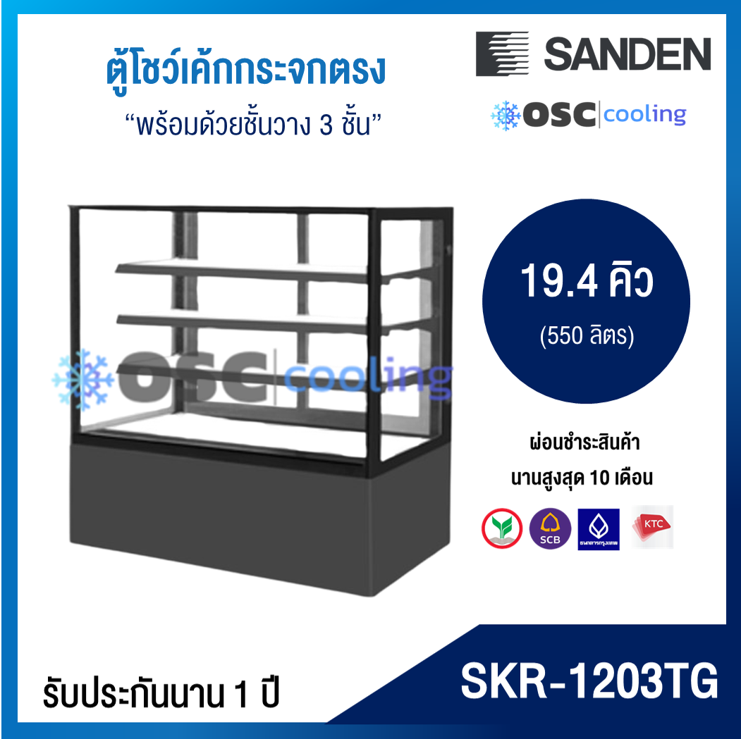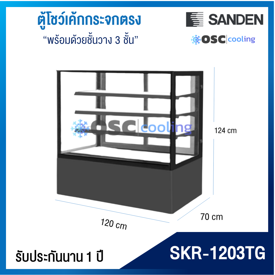ตู้โชว์เค้กกระจกตรง 3 ชั้นวาง กว้าง 120 ซม. สีสเตนเลส "SANDEN" 19.4 คิว [SKR-1203SG]