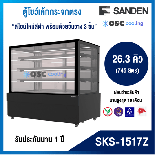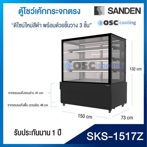 ตู้โชว์เค้กกระจกตรง 3 ชั้นวาง Premium Plus กว้าง 70 ซม. สีดำ 11.5 คิว [SKS-0717Z]