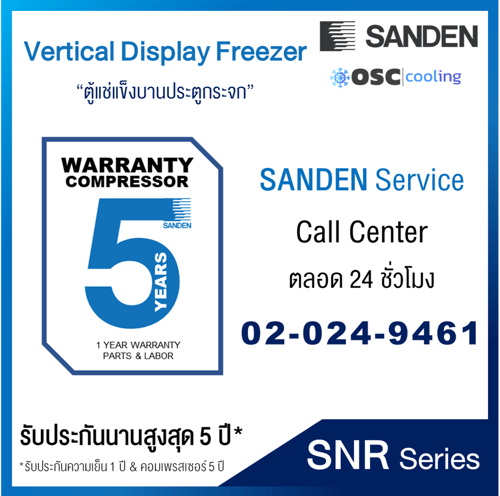 ตู้แช่แข็งประตูกระจก "SANDEN" 16.4 คิว [SNR-0505A]