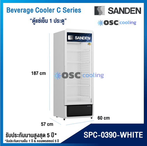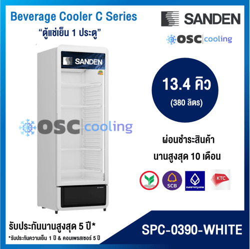 ตู้แช่เย็น 1 ประตู "SANDEN" 13.4 คิว สีขาว [SPC-0390-WHITE]