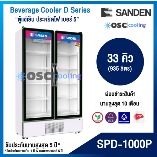 ตู้แช่เย็น 2 ประตู SANDEN ขนาด 27.2 คิว สีขาว [YPC-1100-WHITE]