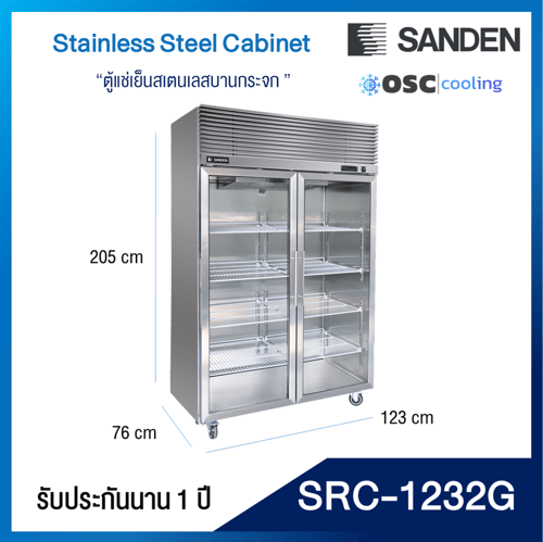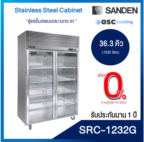 ตู้แช่เย็นแนวตั้งสเตนเลสเกรด 201 บานประตูกระจก 36.3 คิว [SRC-1232G]