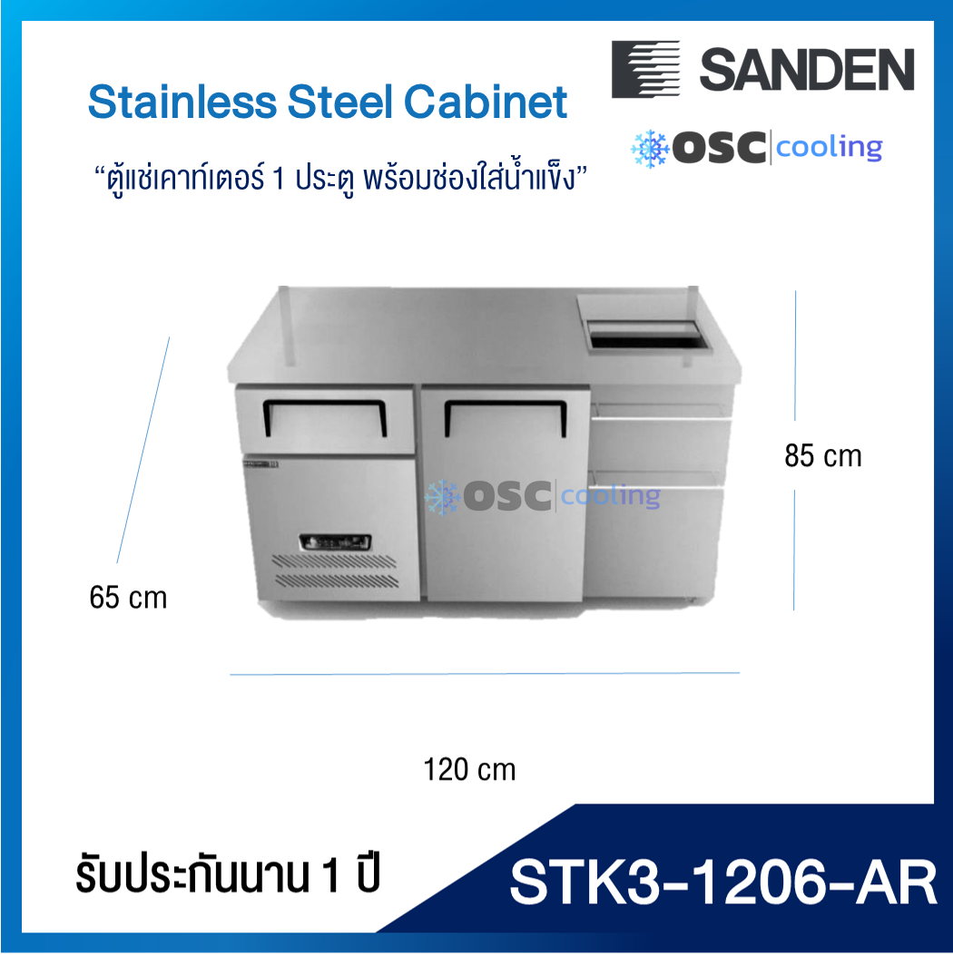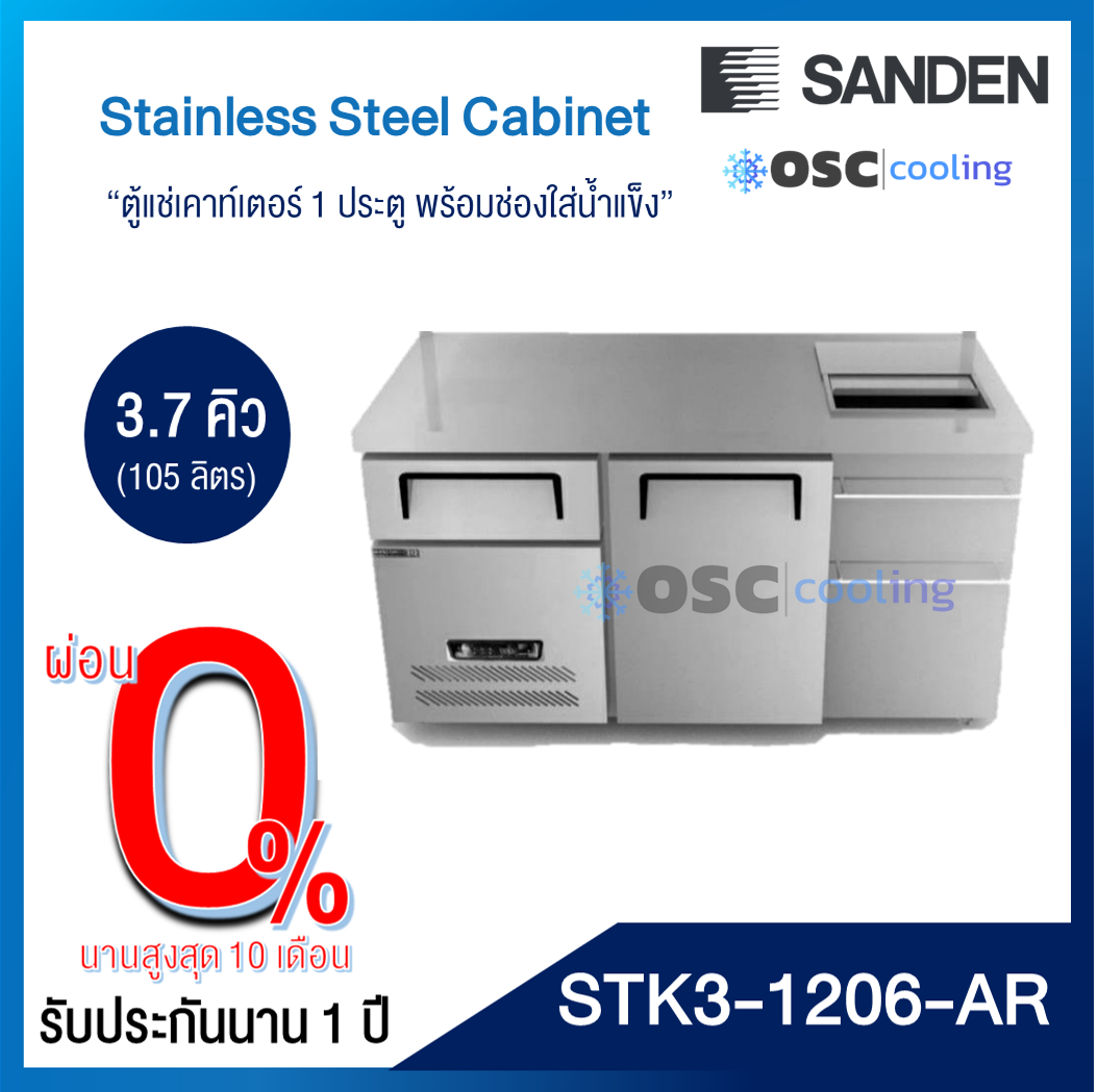 ตู้แช่เคาท์เตอร์ 1 ประตู พร้อมช่องใส่น้ำแข็งและอ่างล้าง 3.7 คิว [SCK3-1206-AR]