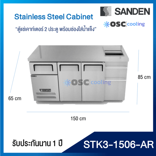 ตู้แช่เคาท์เตอร์ 2 ประตู พร้อมช่องใส่น้ำแข็ง 7 คิว [STK3-1506-AR]