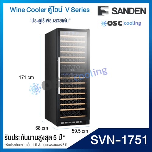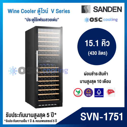 ตู้แช่ไวน์ ความจุ 177 ขวด "SANDEN" 15.2 คิว [SVN-1751]