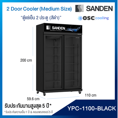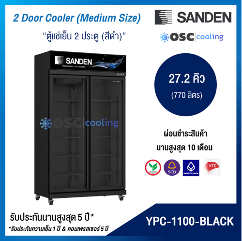 ตู้แช่เย็น 2 ประตู SANDEN ขนาด 27.2 คิว สีดำ [YPC-1100-BLACK]