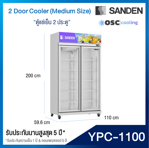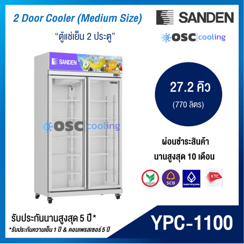 ตู้แช่เย็น 2 ประตู SANDEN ขนาด 27.2 คิว สีขาว [YPC-1100-WHITE]